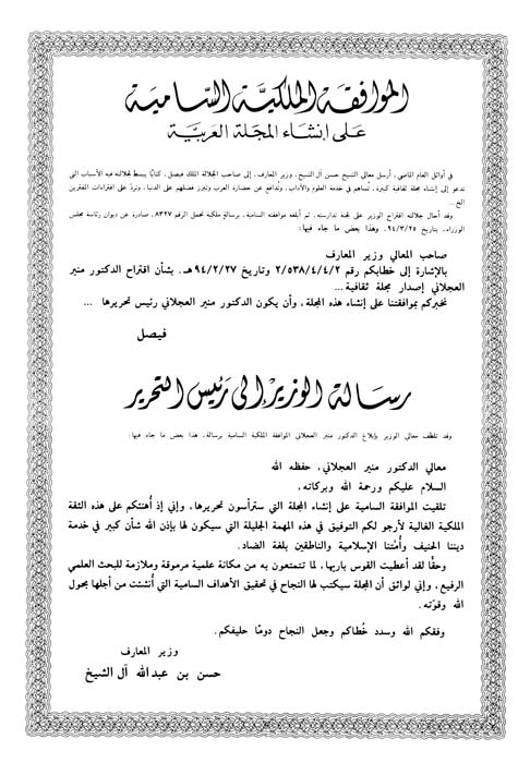 الموافقة الملكية السامية على إنشاء المجلة العربية