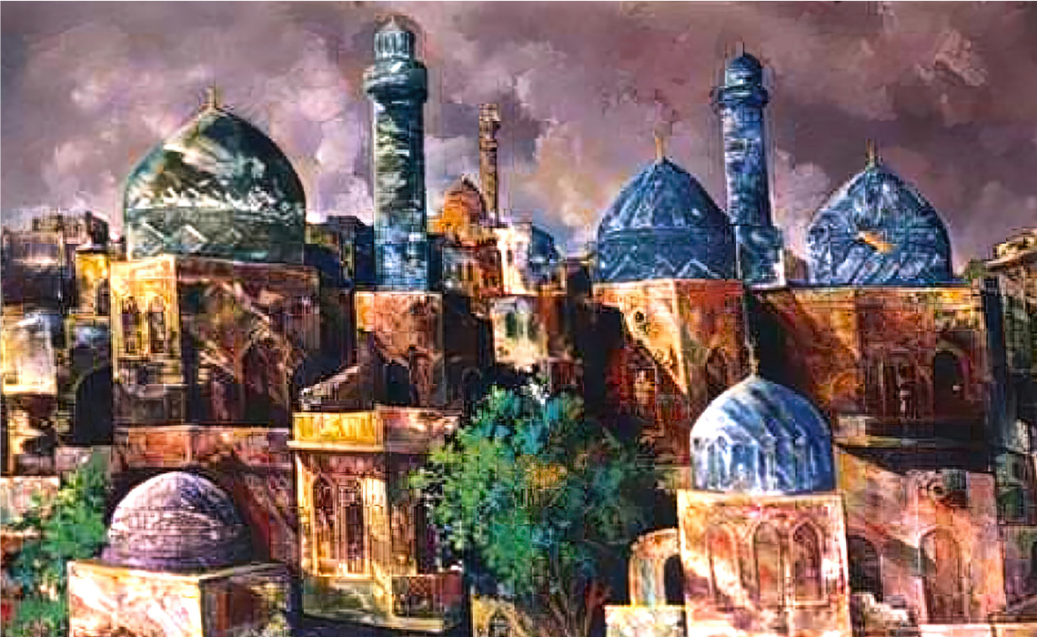 إنّ هذه المحاكات لعناصر المدينة كشيء ممثّل، (ليست بالضرورة نظيراً لهذا الشيء المادي، فالعمل الفني ليس له بالضرورة تمظهر الشيء، إنه يوفر الانطباع والإيحاء). فعند مناظرتنا للوحة نجدنا نبصر الرسمة من زاوية التشخيص التصويري للفضاء. جداريات، تتشابه من حيث المقاسات والتركيبة، وتقابل الخطوط واجتماع الأشكال. إنها الموصل بقبابها وانحناءاتها، بأبوابها وفتحاتها وزخارفها. أحسب أننا أمام التعاقب المعنوي للأزمنة، فالمدينة باقية دائمة أزليّة لتتوالى الفصول ولتتوالى العقود فلا صوت يعلو فوق خطاب العمارة.