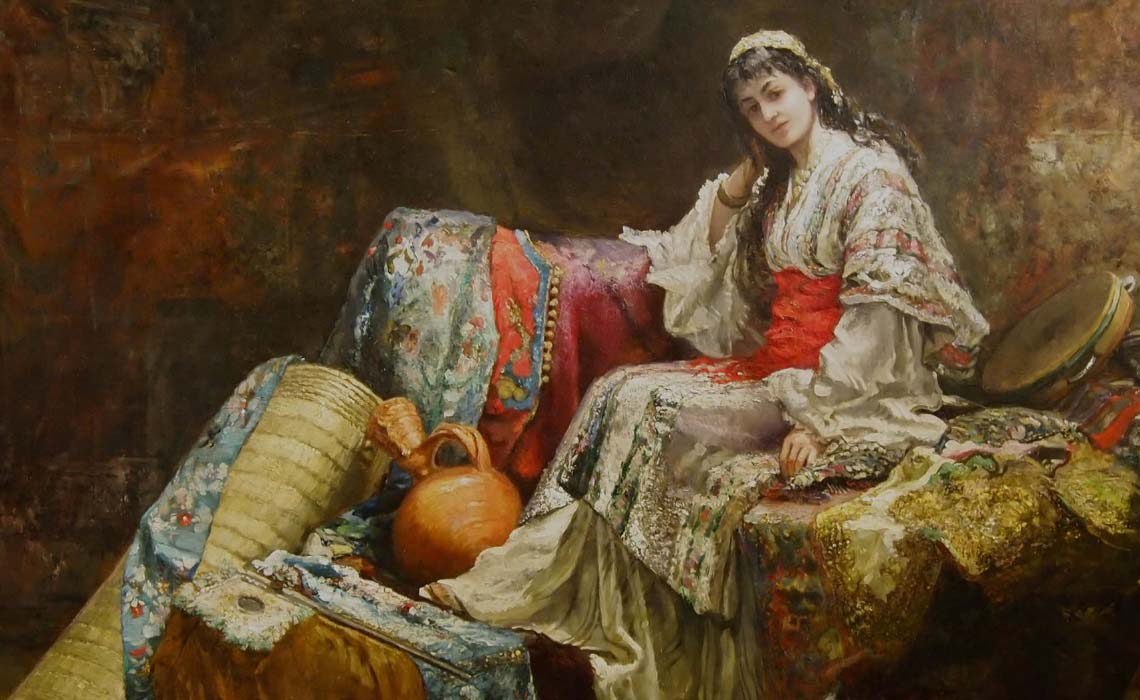 لقد احتلت المرأة مكانة سامية في إبداعه الفني، ونجح في تصويرها كأيقونة جميلة، فهي الأم والابنة والزوجة، حيث أظهرها في أجمل أوضاعها وأكثرها عمقاً. وإن لم يخفِ دلالها وجاذبيتها، في بعض اللوحات؛ فإنه يظهره بشكل لا يخدش الحياء، فهو دلال عفيف، لا خوف منه أو عليه، فنساؤه وديعات يكسو وجوههن سمو وإباء، وقد ظهر لنا ذلك جلياً في العديد من لوحاته الفنية، التي تناول فيها عالم المرأة كلوحة ذات العقد، والسيدة والمروحة، وعازفة العود، وذات الرداء الأزرق، وهي اللوحة التي لم يكملها.